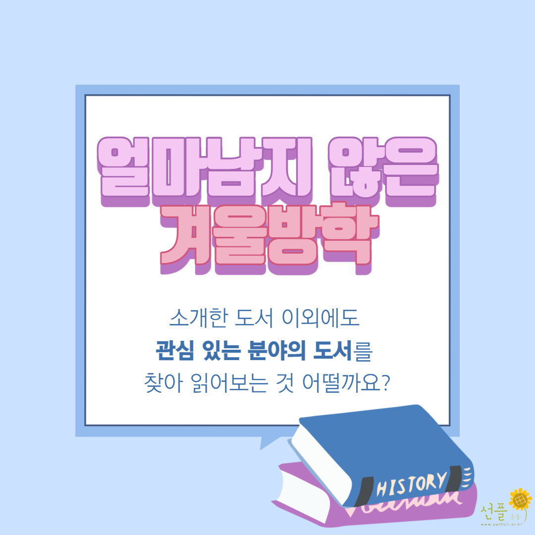 얼마 남지 않은 방학 동안 소개한 도서 이외에도 관심 있는 분야의 도서를 찾아 읽어보시는 것도 좋을 것이라 생각됩니다.