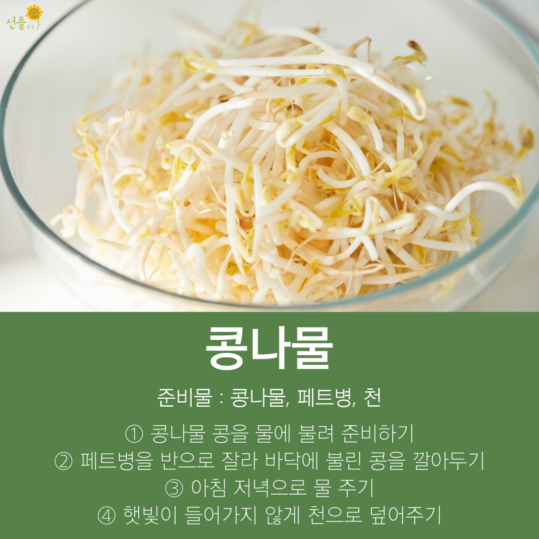 페트병 절반을 자르고 바닥에 불린 콩을 깔아둡니다.