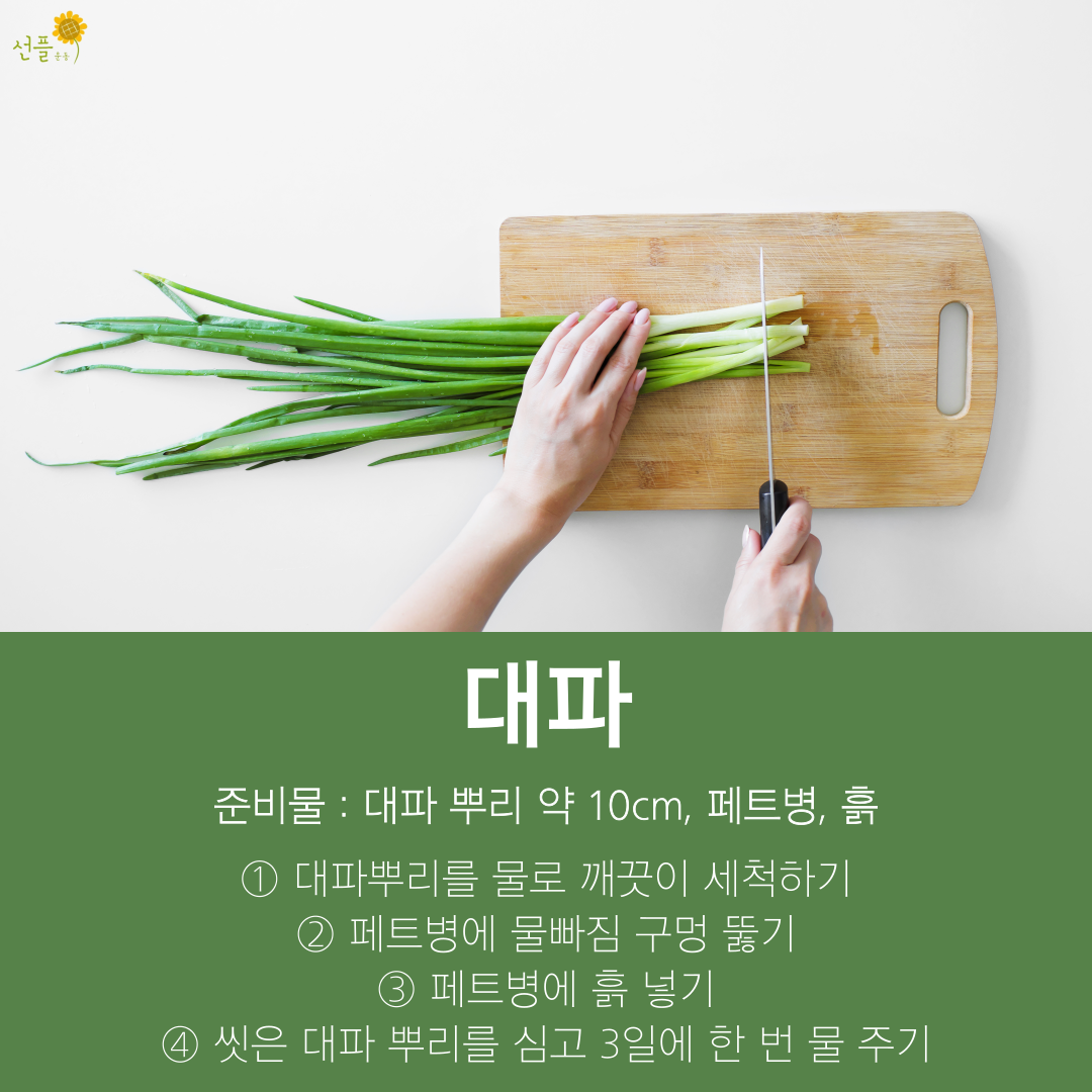 씻은 대파 뿌리를 심고 3일에 한번 물을 줍니다.