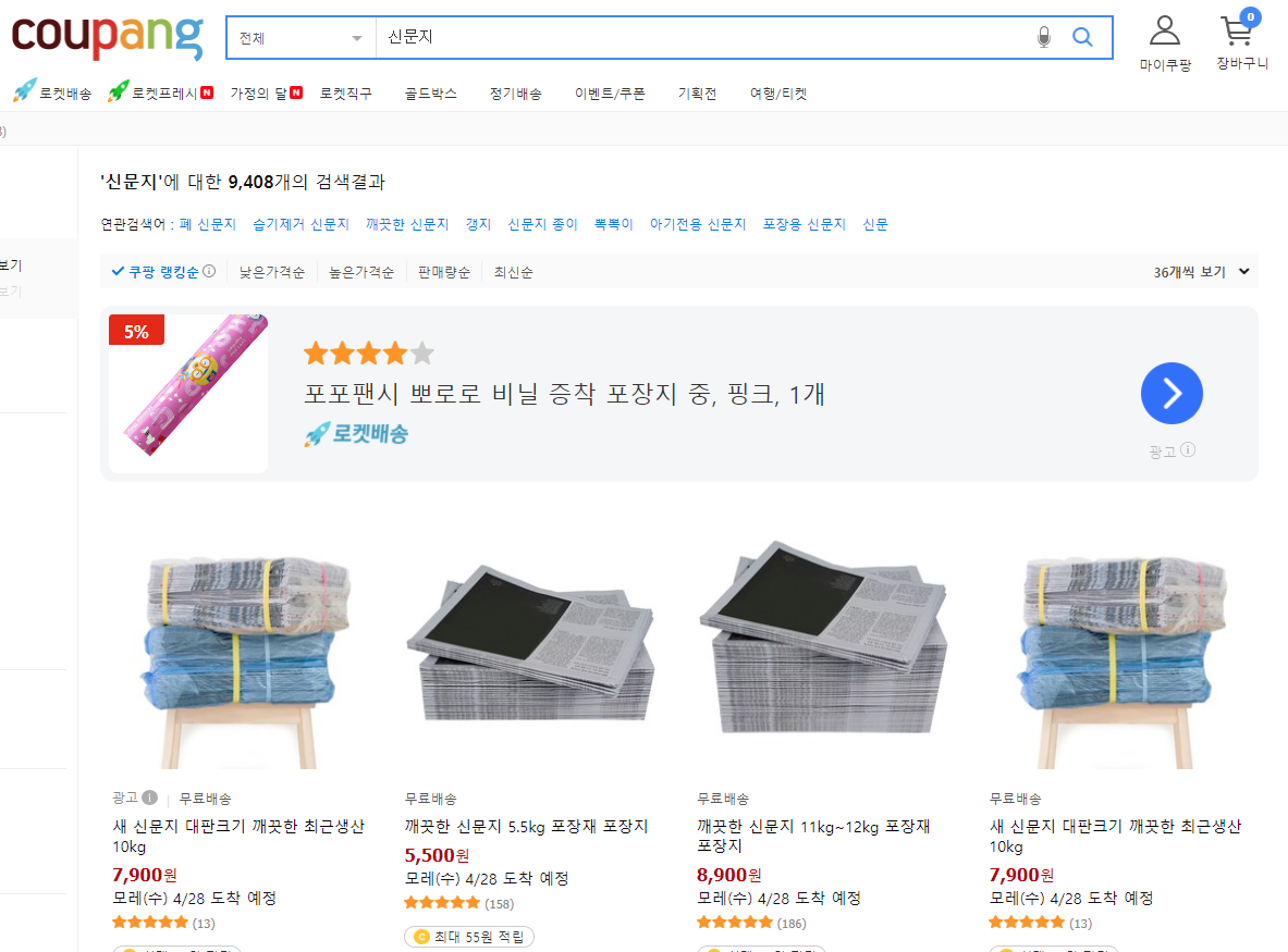 * 동남아에서 인기 있는 우리나라 신문지, 쿠팡에서 새 신문지를 헐값에 살 수 있어요.