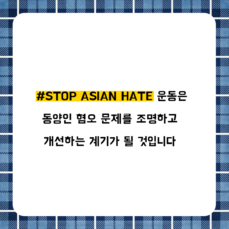 7. #STOP ASIAN HATE 운동은 동양인 혐오 문제를 조명하고 개선하는 계기가 될 것입니다.