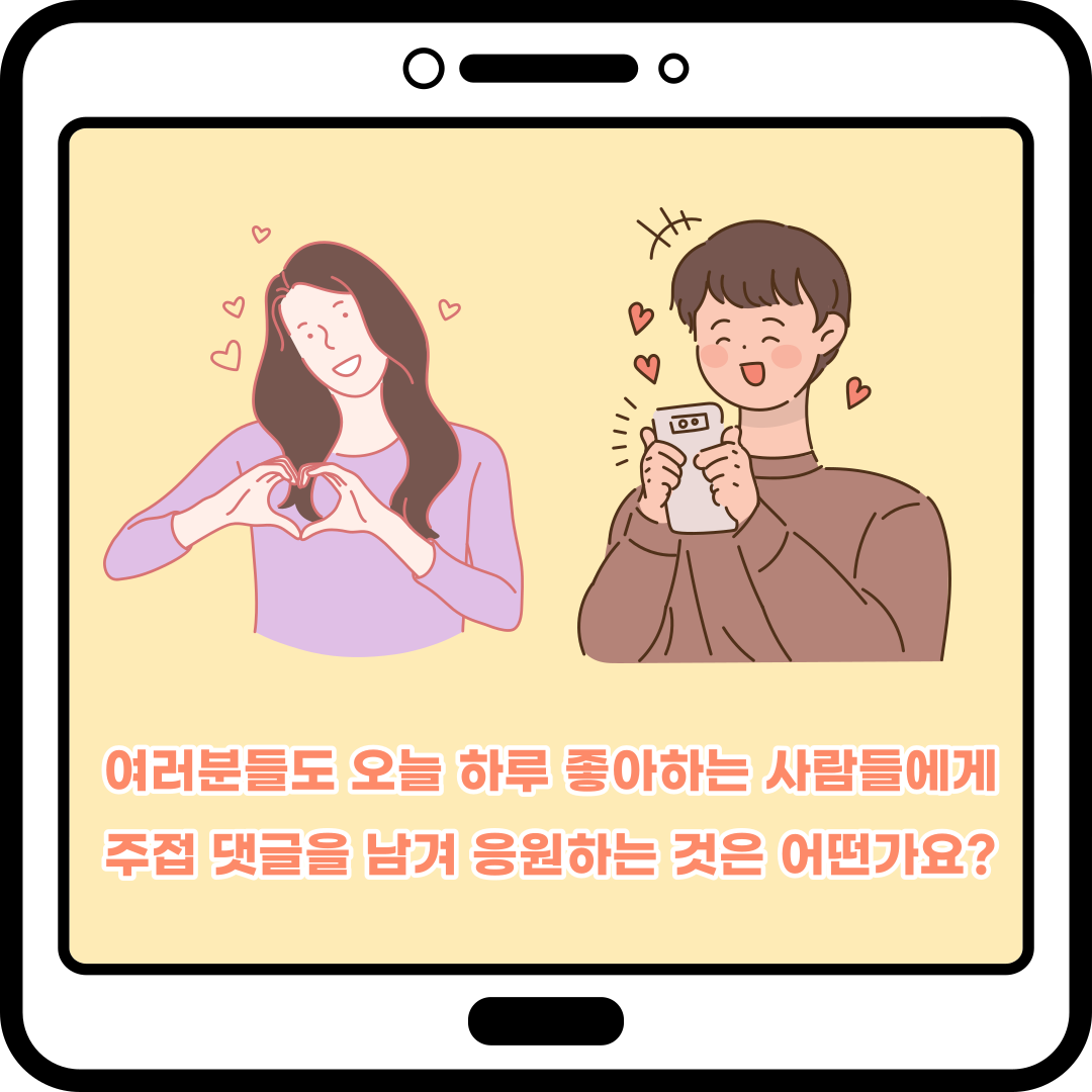 여러분들도 오늘 하루 좋아하는 사람들에게 주접 댓글을 남겨 응원하는 것은 어떤가요?