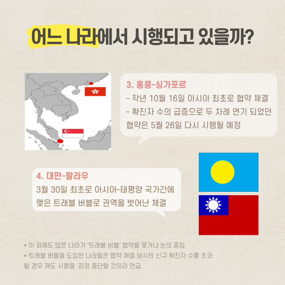 * 트래블 버블을 도입한 나라들은 협약 체결 당시의 신규 확진자 수를 초과할 경우 제도