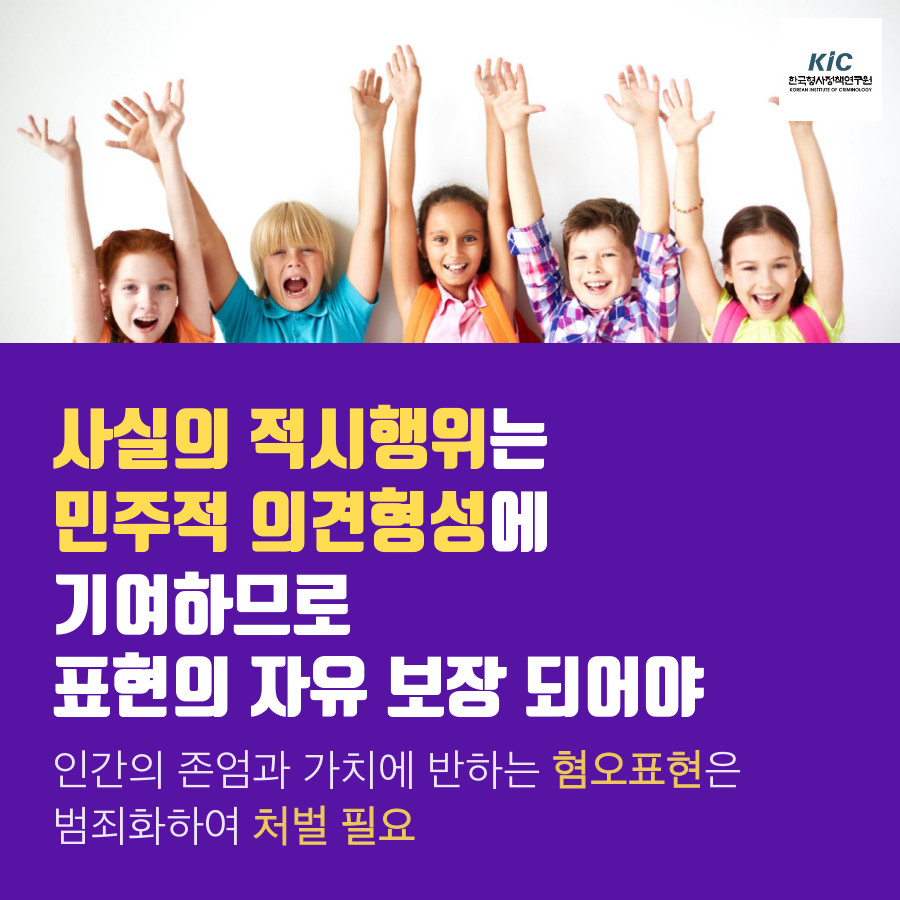 지면을 할애하여 이처럼 사실 적시 명예훼손의 필요 근거를 제시한 이유는 한쪽의 입장에서 해당 조항이 필요함을 알리기 위해서가 아니라, 복잡한 법익 보호의 딜레마를 함께 고민해보기 위해서이다. 이와 관련하여 후속 기사를 통해 우리 법이 ‘표현의 자유’와 ‘알 권리’ 대신 인격권을 택하며 ‘침해의 최소성’을 인정한 근거에 관해서도 소개하고자 한다. 민주사회의 구성원이자 참여자로서, 요즘 화두인 명예훼손에 대해 넓은 시야에서의 고민과 함께 각자의 견해를 정립할 수 있기를 바란다. 나아가 법이 수행해야 할 역할에 대해서도 폭넓은 시각에서 자신만의 견해를 정립하는 것이 필요하다.