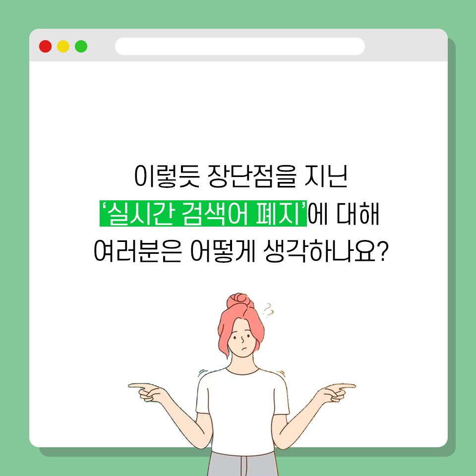 6. 이렇듯 장단점을 지닌 ‘실시간 검색어 폐지’에 대해 여러분은 어떻게 생각하나요?