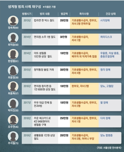 장발장은행에서 대출받기 위해선 중요한 조건이 있다. 바로, 생활형 범죄로 경범죄 수준이어야 한다는 것이다. 예컨대 성범죄와 같은 중범죄의 경우는 신청자가 저소득층이더라도 대출 심사에 오르지 못한다. 장발장은행에 주로 신청이 들어오는 사례는 생계형 범죄로 인해 벌금형을 선고받은 경우이다. 생계형 범죄를 저지른 사람들 대부분이 빈곤층에 속하기 때문에 벌금을 낼 자금이 없는 것이다. 대표적인 사례로 지난해 5월, 폐지를 주워 생계를 이어가던 한 80대 독거노인이 주택가에 버려진 폐지를 주웠다가 그 안에 들어 있었던 감자 5개를 미처 발견하지 못하고 법원으로부터 절도죄로 인한 벌금 50만 원을 선고받았다. 그는 10년 전 연락이 끊긴 부인과 자녀들의 소득이 잡힌다는 이유로 기초생활수급대상자로 분류되지 않았고 매달 받는 기초노령연금 30만 원으로 생활 중이었다. 결국, 50만 원을 내지 못하고 그 당시 지명수배를 받아야 했다. 또한, 2018년도엔 700원짜리 라면을 사서 집에 돌아가던 오 모씨가 길에 떨어져 있던 체크카드로 쌀과 햄 한 통, 두부 한모 등 총 4만 4940원을 계산했다가 법원으로부터 벌금 250만 원을 선고받았다. 그녀는 노래방 도우미로 일했었지만 1년 전 다리를 다친 뒤 일을 하지 못했고 기초생활수급비 50만 원 중 40만 원을 월세로 내면서 생활하고 있었다. 결국, 벌금을 내지 못하다가 이후 장발장은행을 통해 벌금을 완납해야 했다.