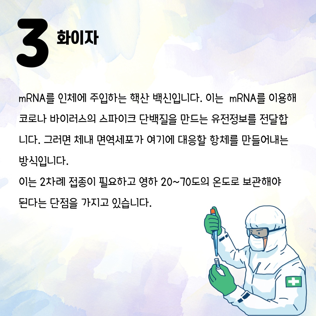 이는 2차례 접종이 필요하고 영하 20~70도의 온도로 보관해야 된다는 단점을 가지고 있습니다.