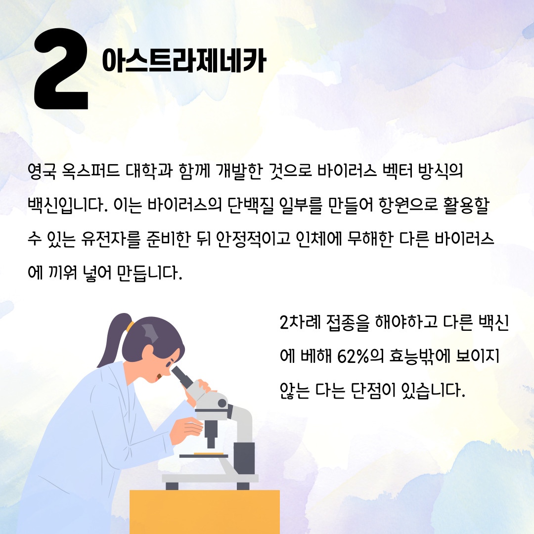 2차례 접종을 해야하고 다른 백신에 베해 62%의 효능밖에 보이지 않는 다는 단점이 있습니다.