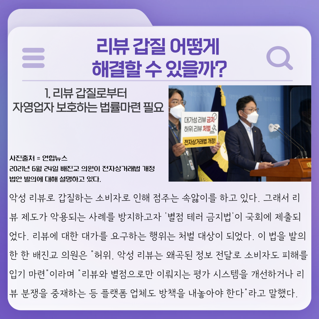 6. 리뷰 갑질 어떻게 해결할 수 있을까? 1 – 리뷰 갑질로부터 보호하는 법률마련