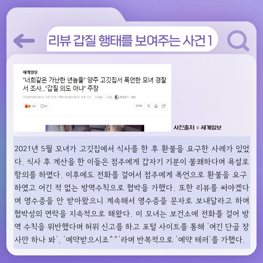 2. 리뷰 갑질 행태를 보여주는 사건 1