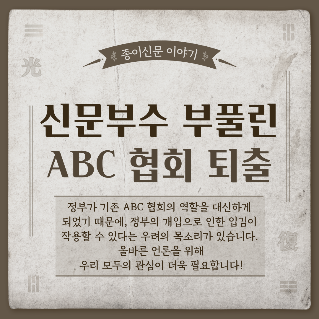 정부가 기존 ABC 협회의 역할을 대신하게 되었기 때문에, 정부의 개입으로 인한 입김이 작용할 수 있다는 우려의 목소리가 있습니다. 올바른 언론을 위해 우리 모두의 관심이 더욱 필요합니다!