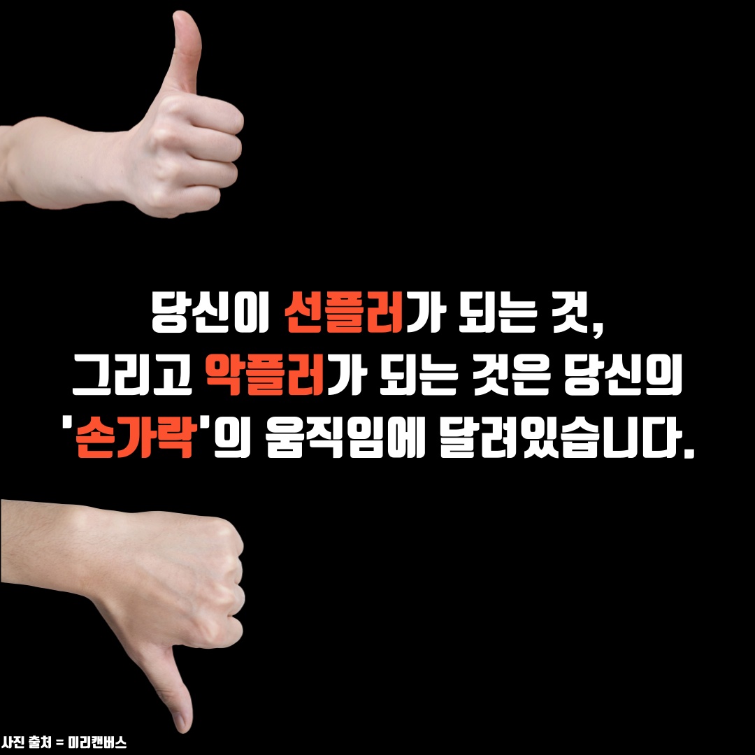 당신이 선플러가 되는 것, 그리고 악플러가 되는 것은 당신의 ‘손가락’의 움직임에 달려있습니다.