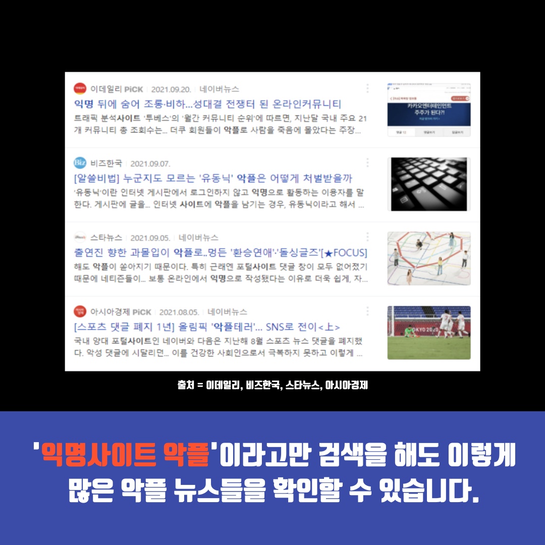 ‘익명사이트 악플’이라고만 검색을 해도 이렇게 많은 악플 뉴스들을 확인할 수 있습니다.