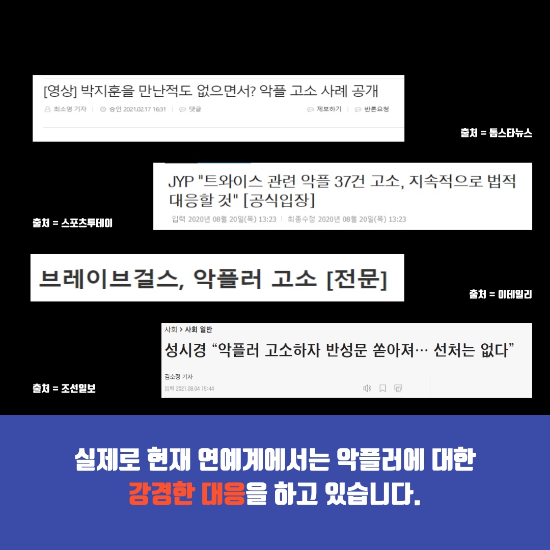 실제로 현재 연예계에서는 악플러에 대한 강경한 대응을 하고 있습니다.