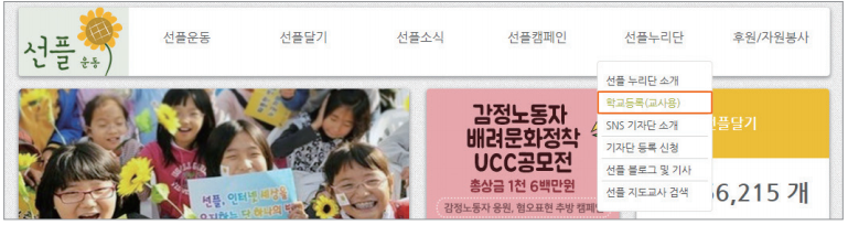 선플인터넷평화운동 참여 학교에서는 홈페이지에 선플 배너를 설치하고, 선플지도교사를 정하여 선플 홈페이지의 [선플누리단] 메뉴에서 [학교등록(교사용)]을 신청하면, 학교 선플지도교사에게 해당 학교 학생들의 선플 활동을 관리할 수 있는 관리자 모드가 제공됩니다.